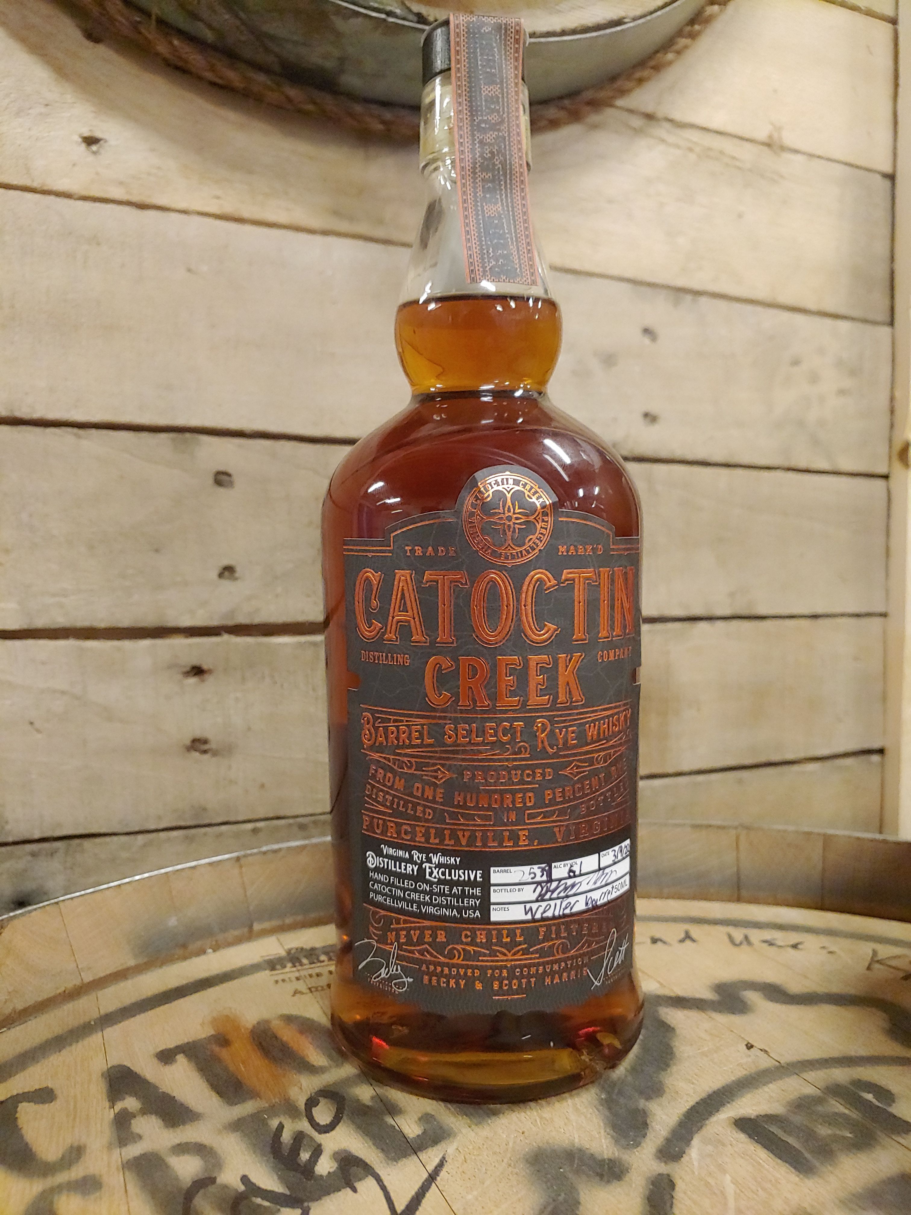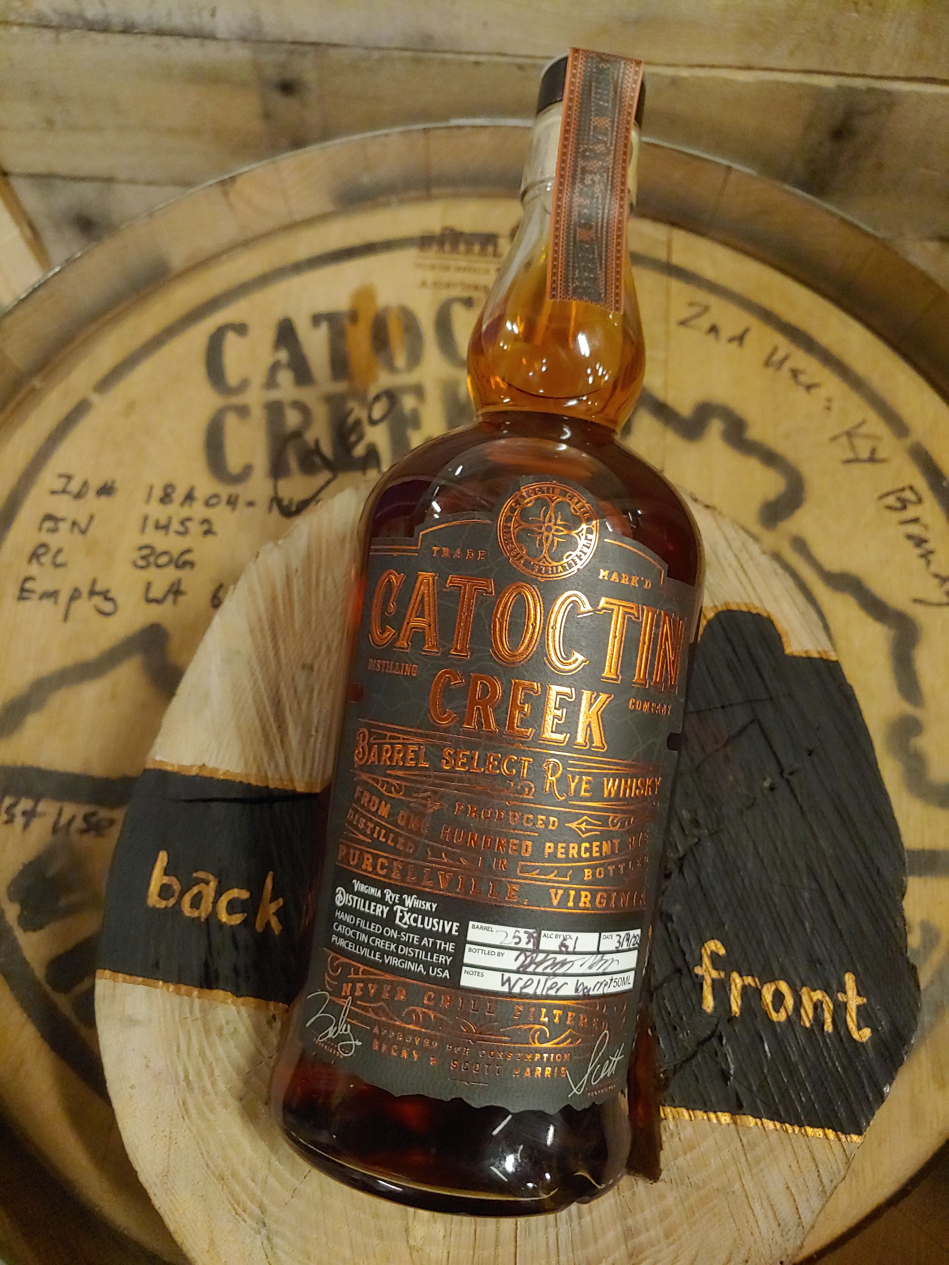 The Barrel Select Premium whisky, as it will be called, comes in a beautiful Italian glass bottle, with a gorgeous black and copper label. All offerings from the program will be unfiltered at natural cask proof, 750mL and $129.99 per bottle. These bottles will not be available for purchase outside of the Catoctin Creek tasting room.